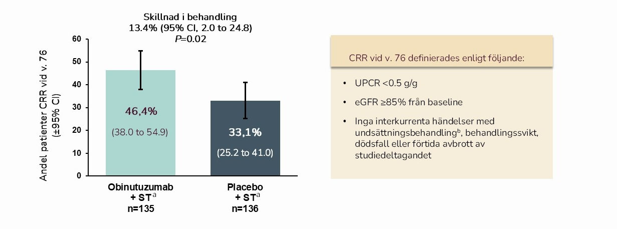 dPatients were followed through Week 76 and for at least 12 months from the last dose of obinutuzumab or placebo;