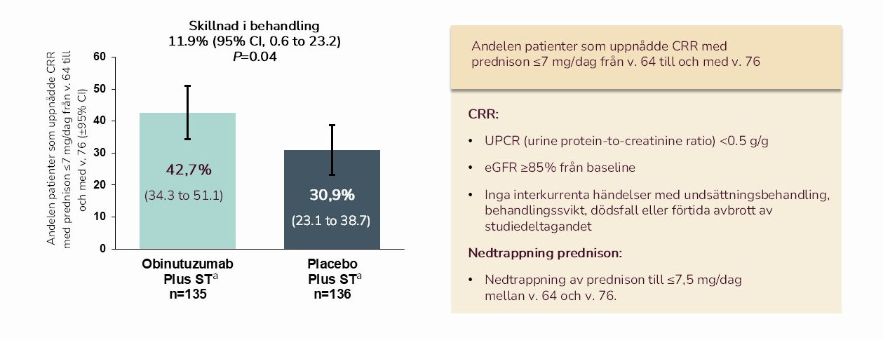 CRR vid v. 76 med prednison ≤7.5 mg/dag mellan v. 64 och v. 761